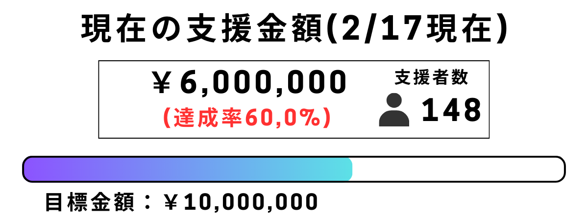 これまで多くの皆さまに支えていただき、 クラウドファンディングの総支援額は600万円を突破いたしました。